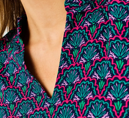 Scallop Trim Front Tie Detail Puff Sleeve Top