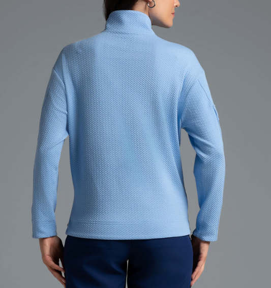 Solid Popcorn Stitch 1/4 Zip Pullover - Periwinkle
