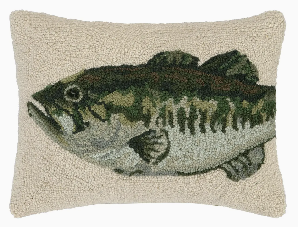 Capture the essence of the great outdoors with this charming Bass Hook Pillow. Featuring a hand-hooked wool face, the lifelike fish design brings a rustic, natural touch to any setting. The solid polyester velvet back offers a smooth touch, making this pillow both stylish and comfortable. The removable polyester insert and convenient zipper closure make it easy to clean and maintain. Ideal for cabins, lodges, or adding a touch of wilderness to your home.