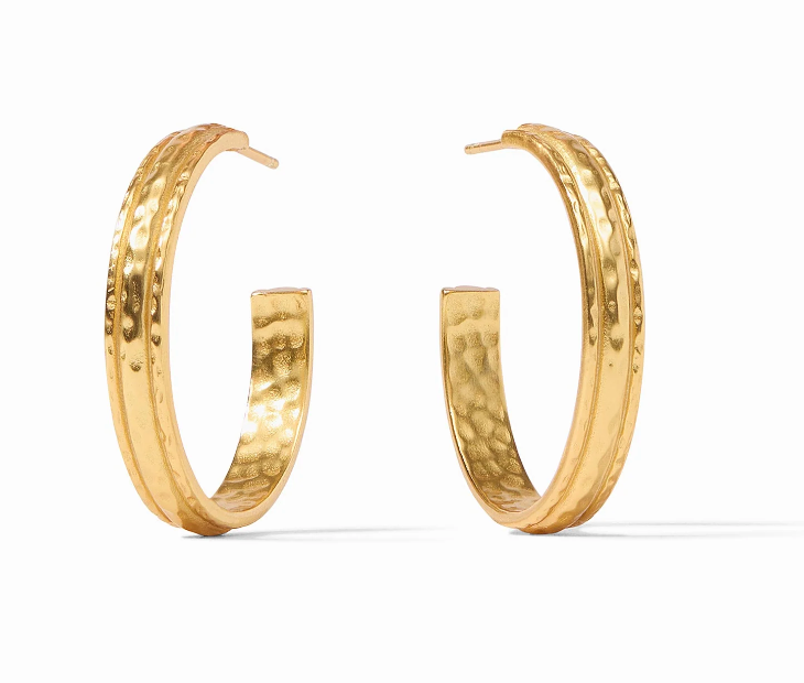 This hoop's hand-hammered golden bands softly glint and glimmer in the light.
