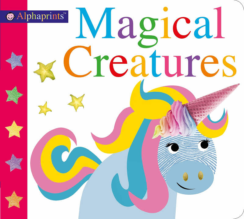 Alphaprints Magical Creatures is a board book with a sparkly cover and embossing throughout. Young children will love to discover the fantasy creatures, with a lighthearted rhyming couplet that tells you something about each of them. An engaging and interesting book for children and adults alike.