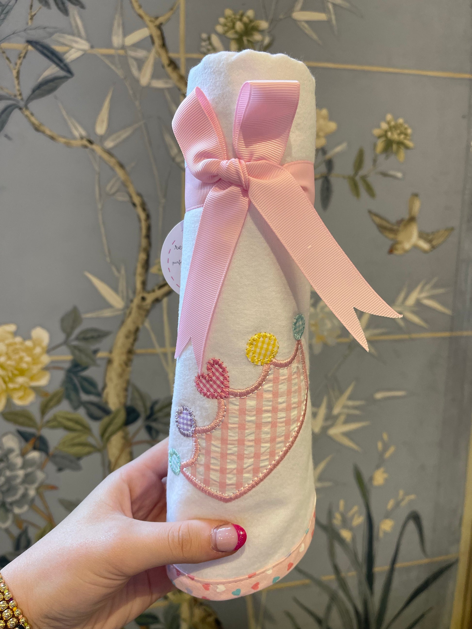 Our swaddle blankets are made from 100% cotton double-napped flannel (as used in many hospitals!). They feature one of our signature appliques. They are multi-functional – use them for cuddling, swaddling, tummy time, and even as stroller covers on a sunny day.