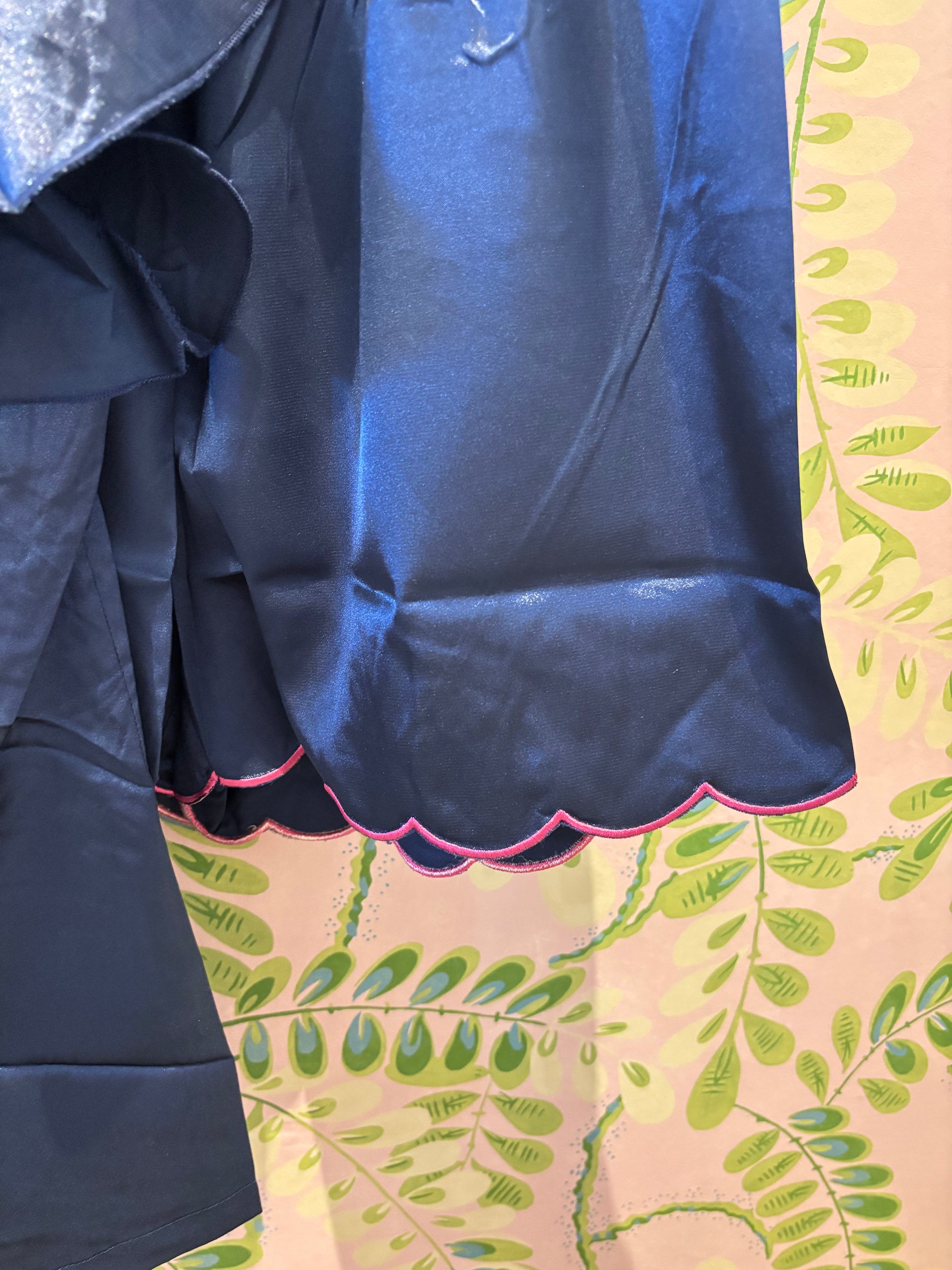 Satin Short Sleeve Pajama Set in Navy with Hot Pink Piping Detail