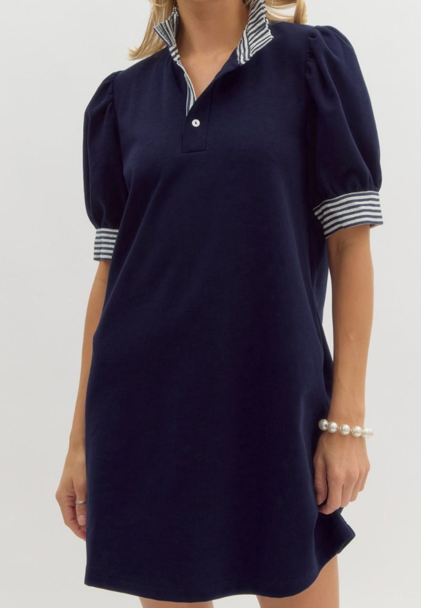 Solid Short Sleeve Pullover Polo Dress - Navy