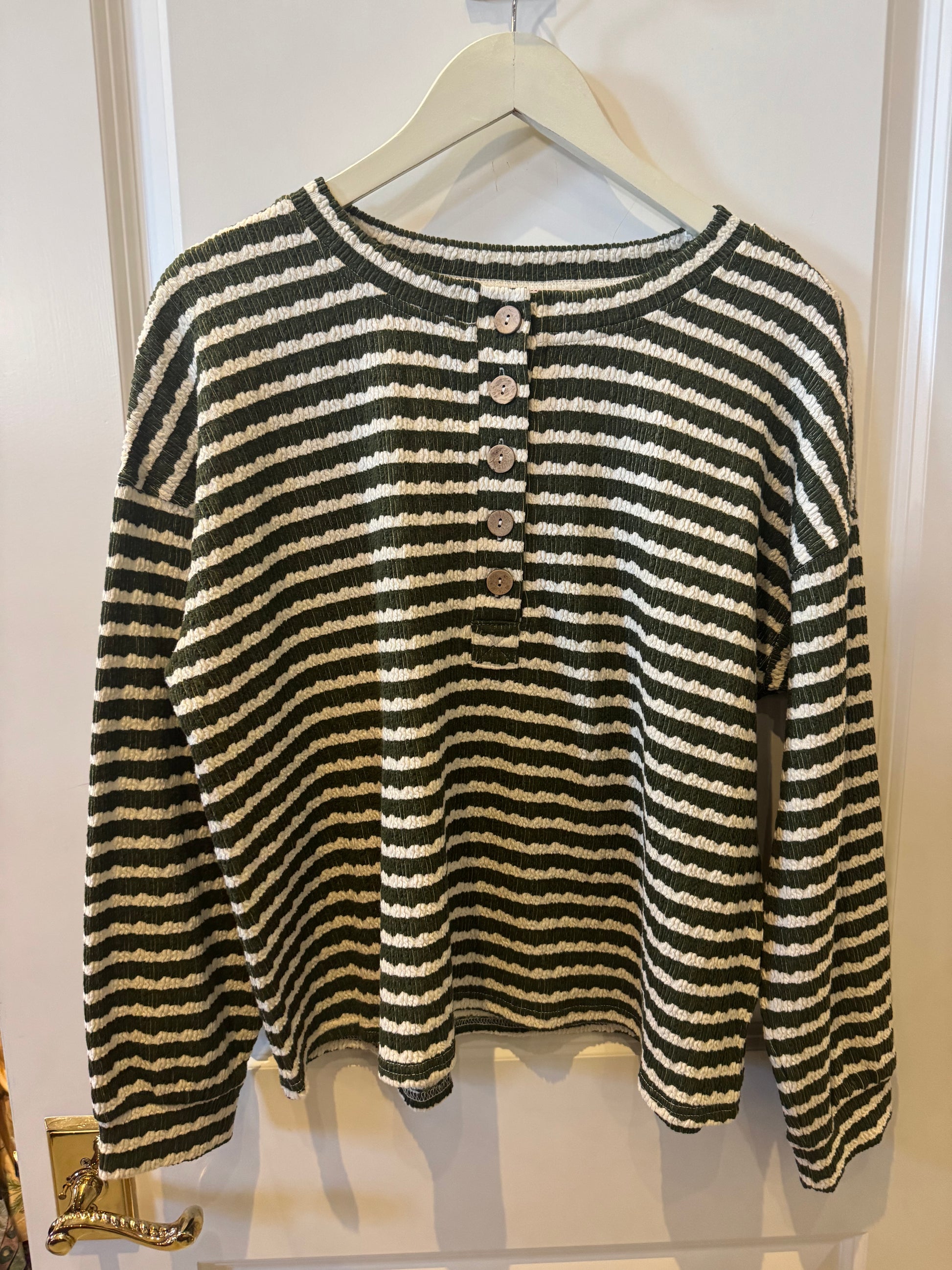 Stripe Textured Long Sleeve Henley Knit Top