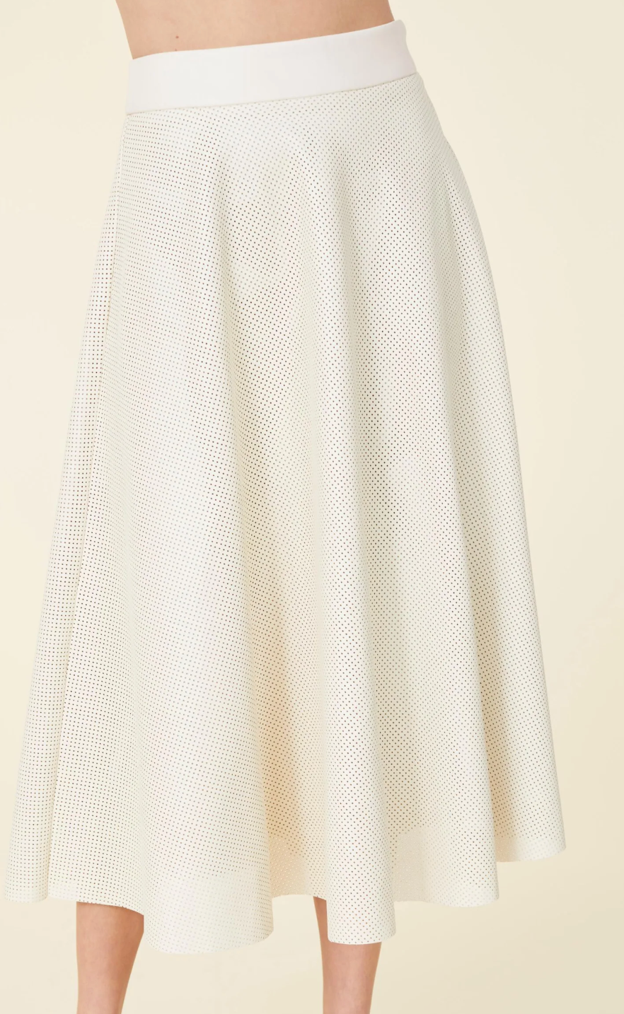 Vegan Leather Perforated Skirt - Creme